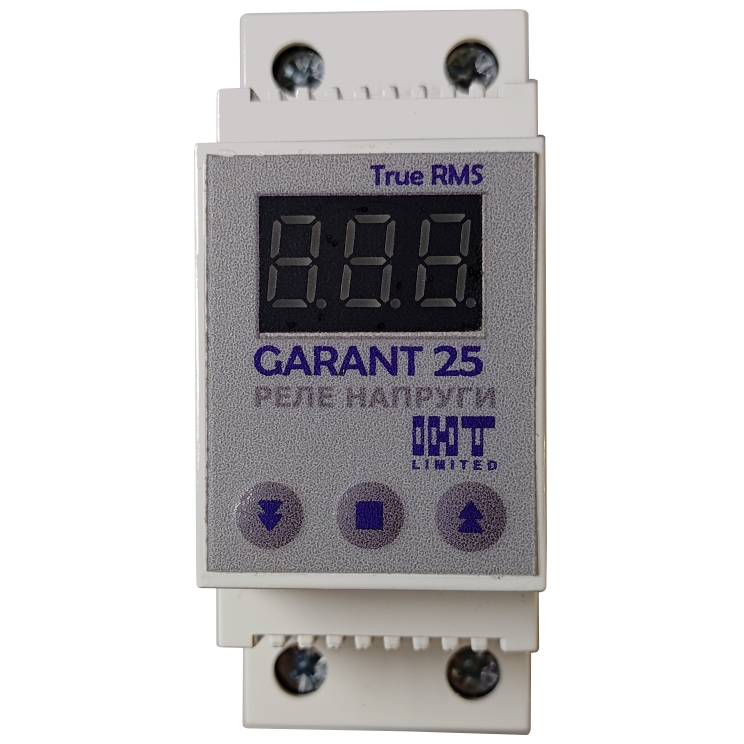 Реле напруги GARANT 25 має мікропроцесорне керування, воно постійно відслідковує рівень вхідної напруги та після повернення її в нормальні межі повинно відновити живлення для внутрішньої мережі споживача.