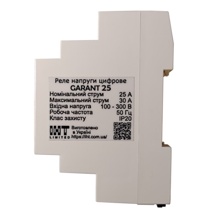 Реле напруги GARANT 25 монтується в однофазну мережу змінної напруги 220 Вольт, 50 Гц користувача та здатно комутувати загальне навантаження до 25 Ампер включно.